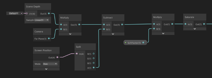 The particle shader in Undying is quite simple. We use camera depth in the shader graph to create soft edges for particles.